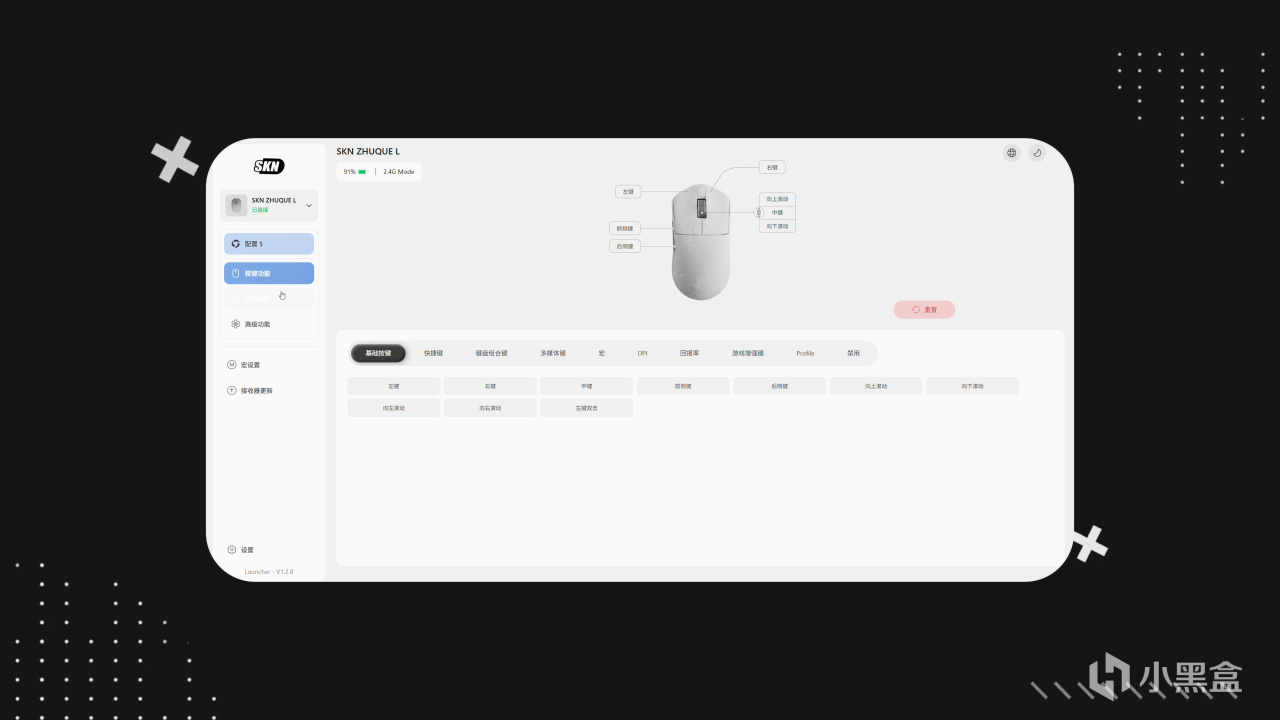 网页驱动当然也不能少,SKN在这方面还是做的不错的,界面属于简洁易用那一类的,除了基础的参数调整以外,还能一键应用预设的职业参数,就算是第一次接触电竞鼠标的小白也能很好的上手!