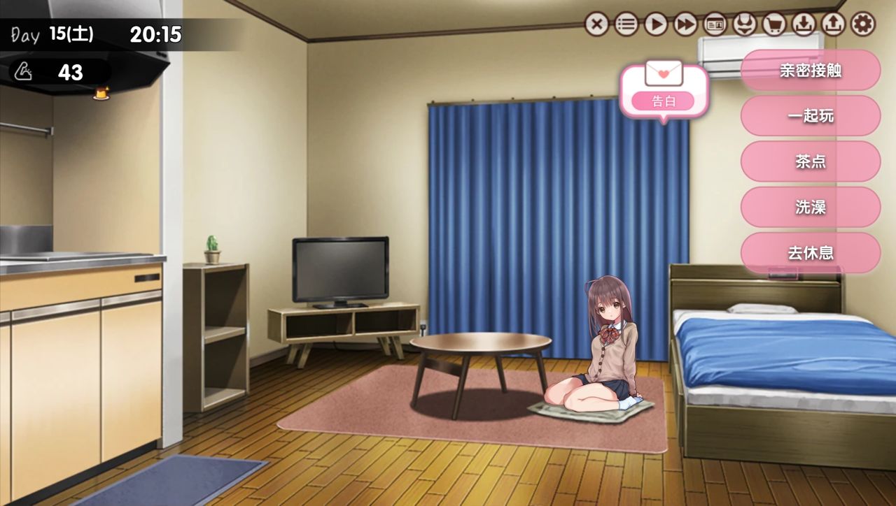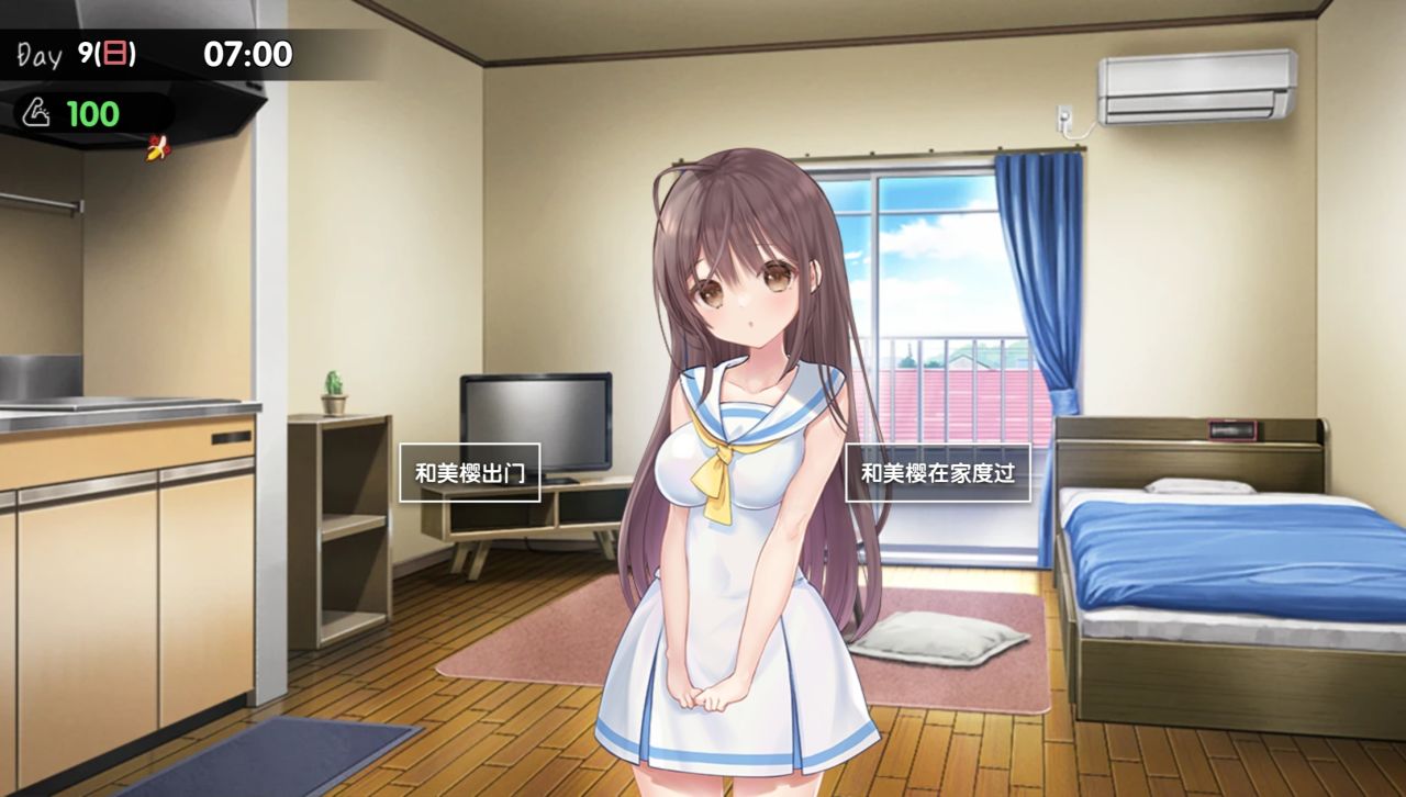 平常的话,你要上班,美绪要上学,没什么在一起的时间,所以每个星期天二人都放假时是一起出门的好日子,虽然说可以选择一起宅在家,但还是建议一起出门,是涨好感和触发新场景cg的好时候,一开始不是所有地方都可以去,后面会慢慢解锁。