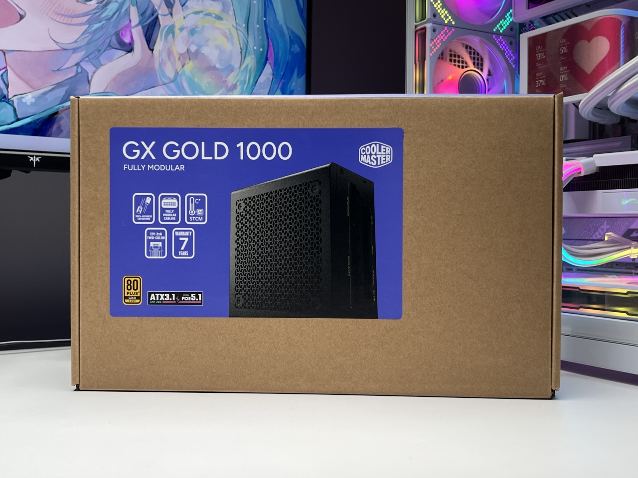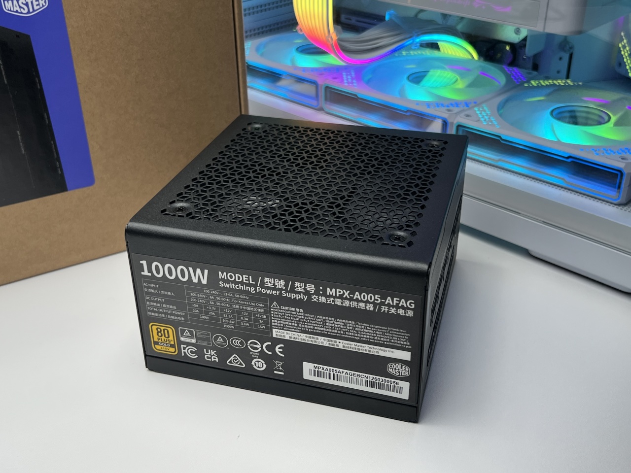 酷冷至尊GX GOLD 1000W外包装整体给我的感觉很“朴素”,不论是包装盒材质还是信息贴纸,不过也能理解,这款电源应该是你目前能买到的非常亲民的全桥1000W金牌电源,属于是把“钱花在刀刃上”。