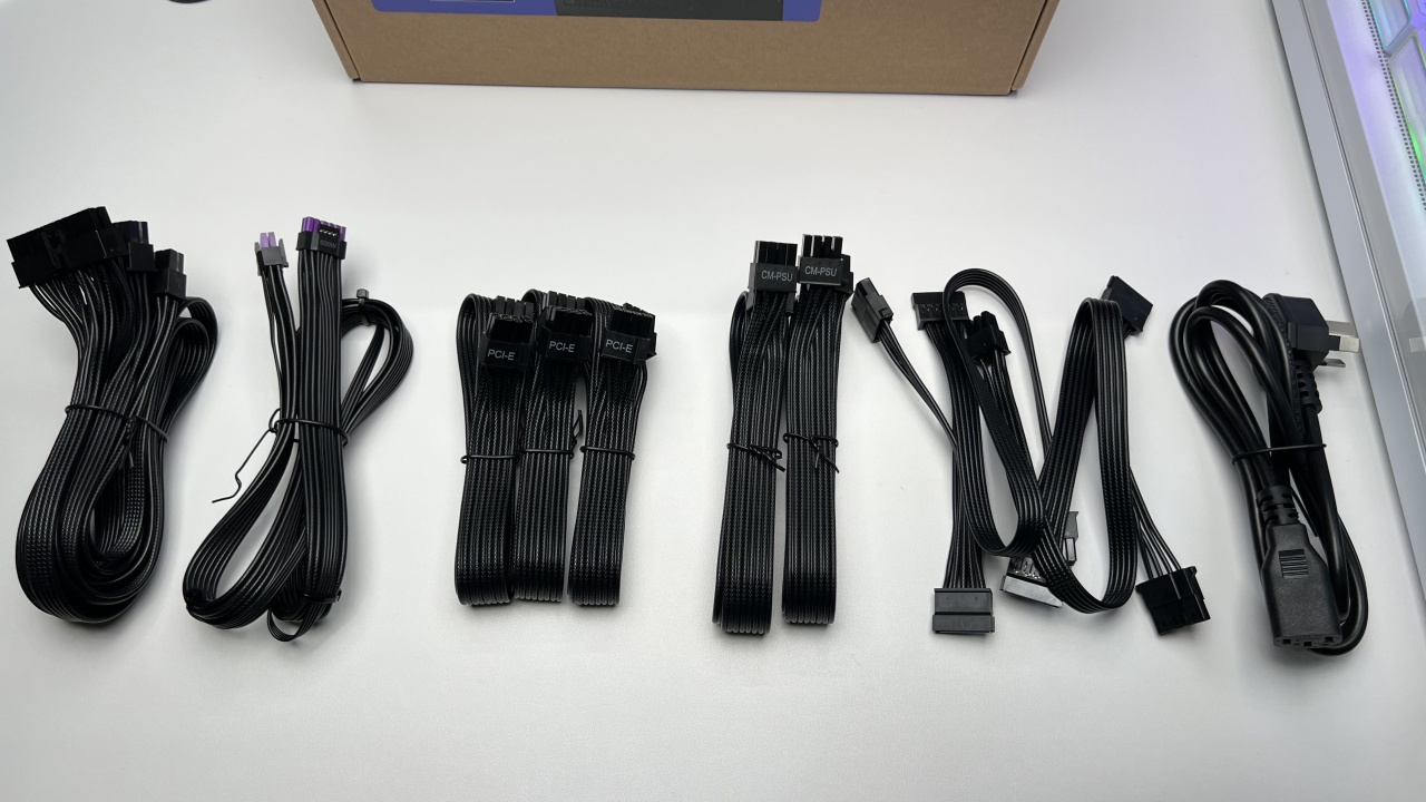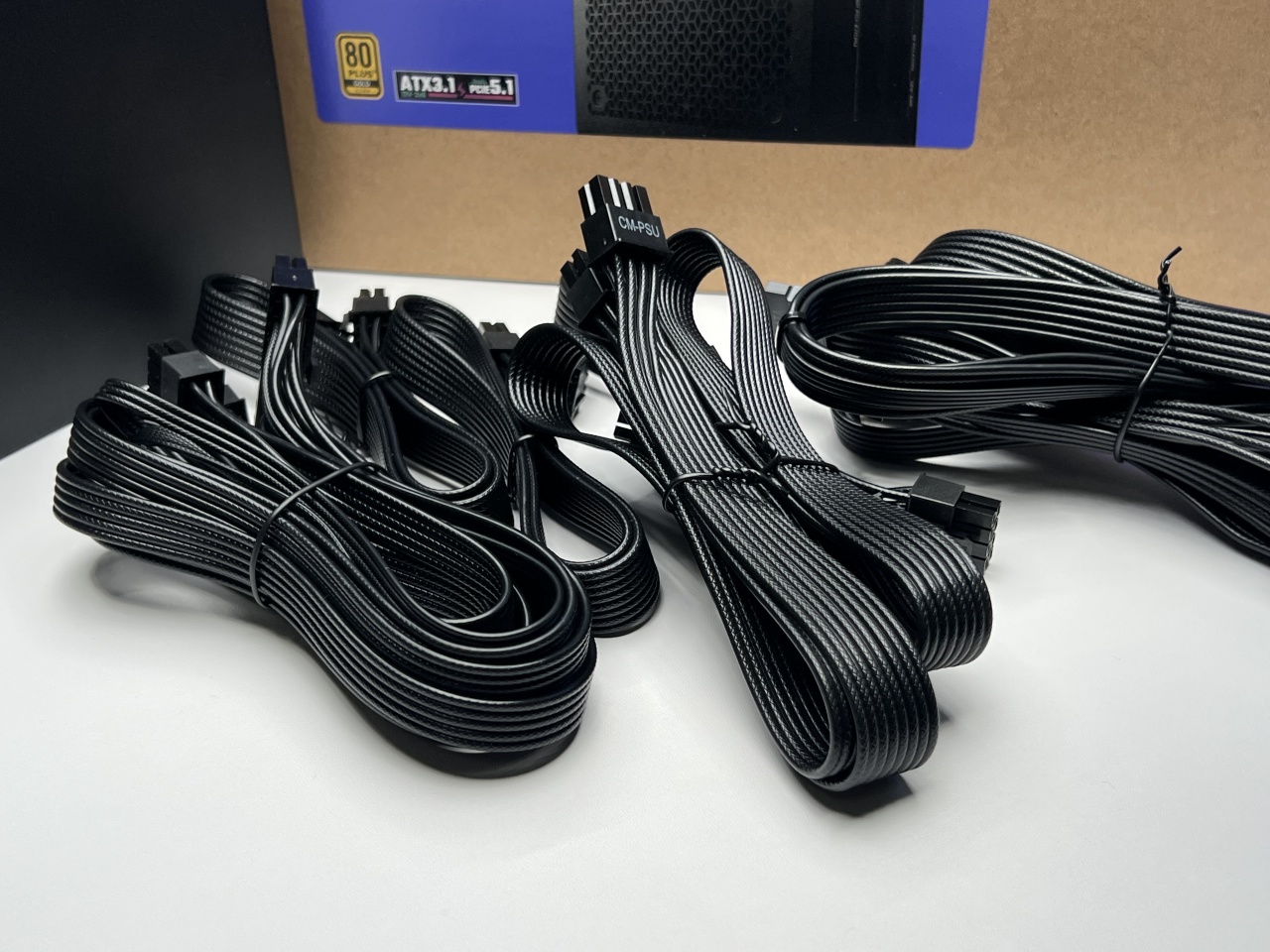模组线材是压纹扁线,而且是一体式模组线,线材出厂就已经绑了扎带,这个设计直接省去了包装里的理线梳和扎带,挺省事的;