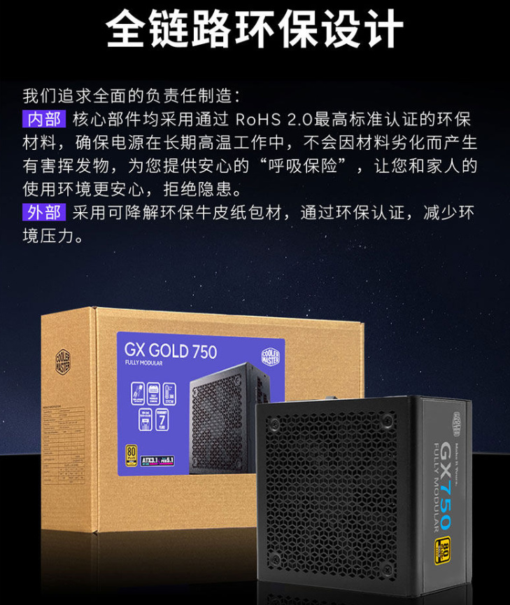 当然不止是外包装走环保路线,电源的用料健康部分也是遵循欧洲RoHS环保标准制造的,五六十度的高温下长时间使用不会释放有毒物质,保障身体健康。