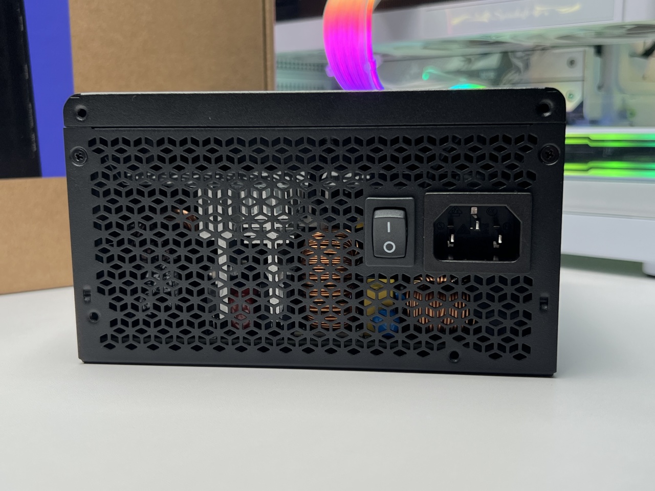 尾部同样是大面积六边形散热孔位,配有独立AC电源开关,没有ECO启停开关还是比较可惜的。