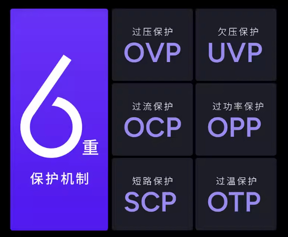 电源的宽幅电压适配支持100-240V宽幅输入,同时为了电源能全球主要市场100-240V环境下都能安全、稳定工作,GX GOLD 1000W具备OVP、OCP、SCP、UVP、OPP、OTP六重保护,直接全面覆盖过流、过压、短路、过载、欠压、过温等异常场景,让电源用的安心、顺心。