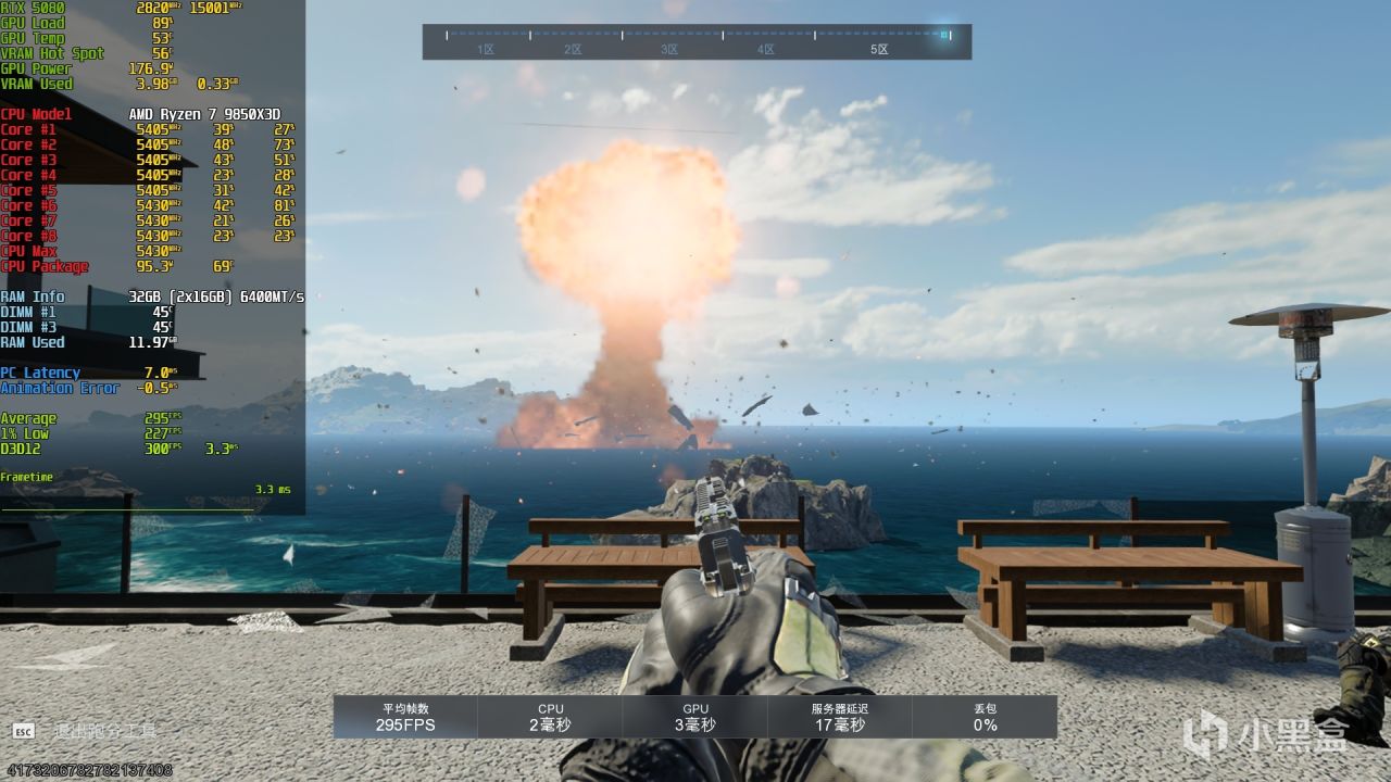 《使命召唤22:黑色行动7》预设低画质+TAA,锐龙7 9850X3D+DDR5 6400C28+RTX 5080平均帧数为295fps,1% LOW帧为227fps