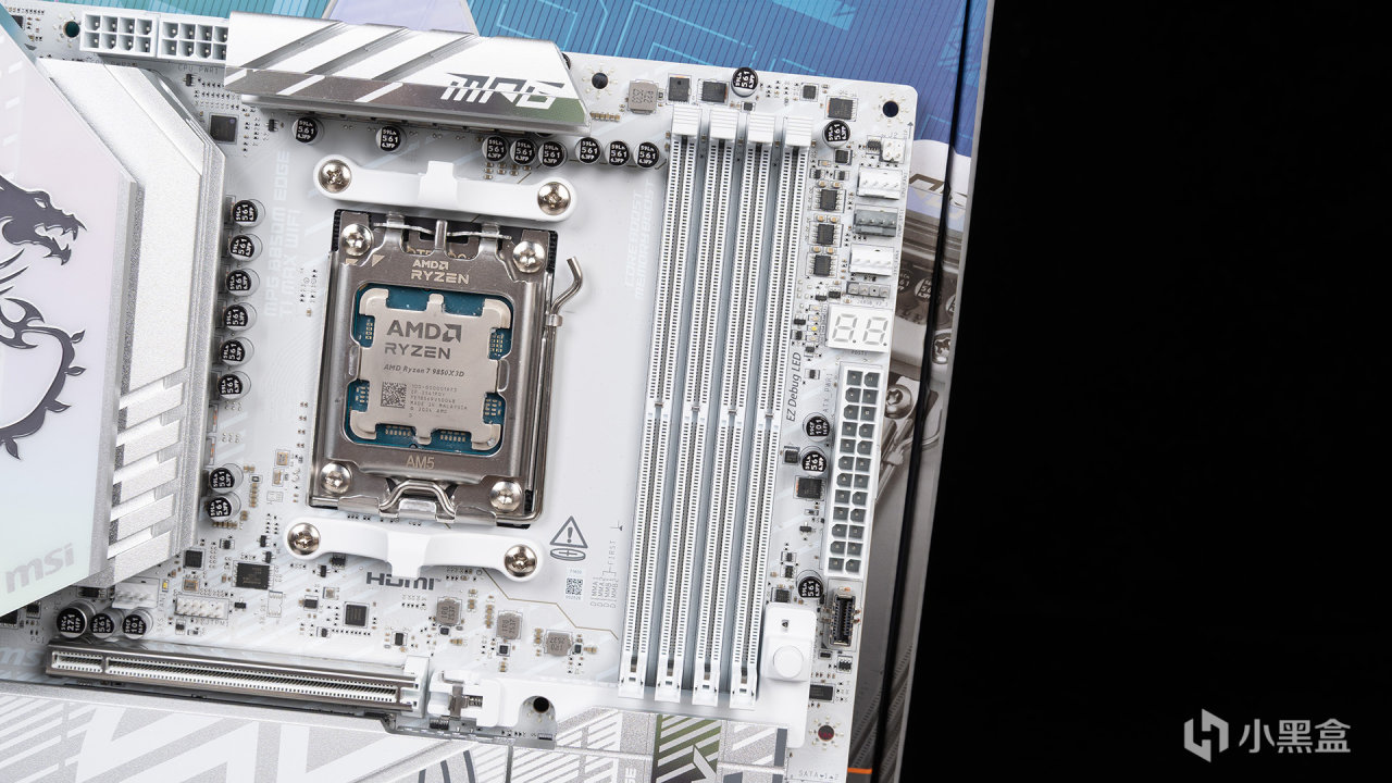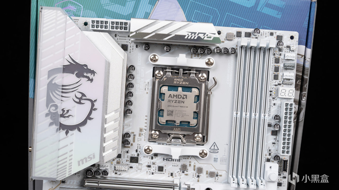 锐龙7 9850X3D堪称当今游戏性能最强的CPU,得益于Zen 5架构,满载功耗并不高,搭配一款全能型B850主板即可,且B850拥有丰富的MATX规格可选,契合当下紧凑装机热潮。微星在今年初时推出了MPG B850M EDGE TI MAX WIFI刀锋钛主板,属于最强B850M-ATX之一,各项参数拉满之余,它还是一款完全纯白的高颜值主板。