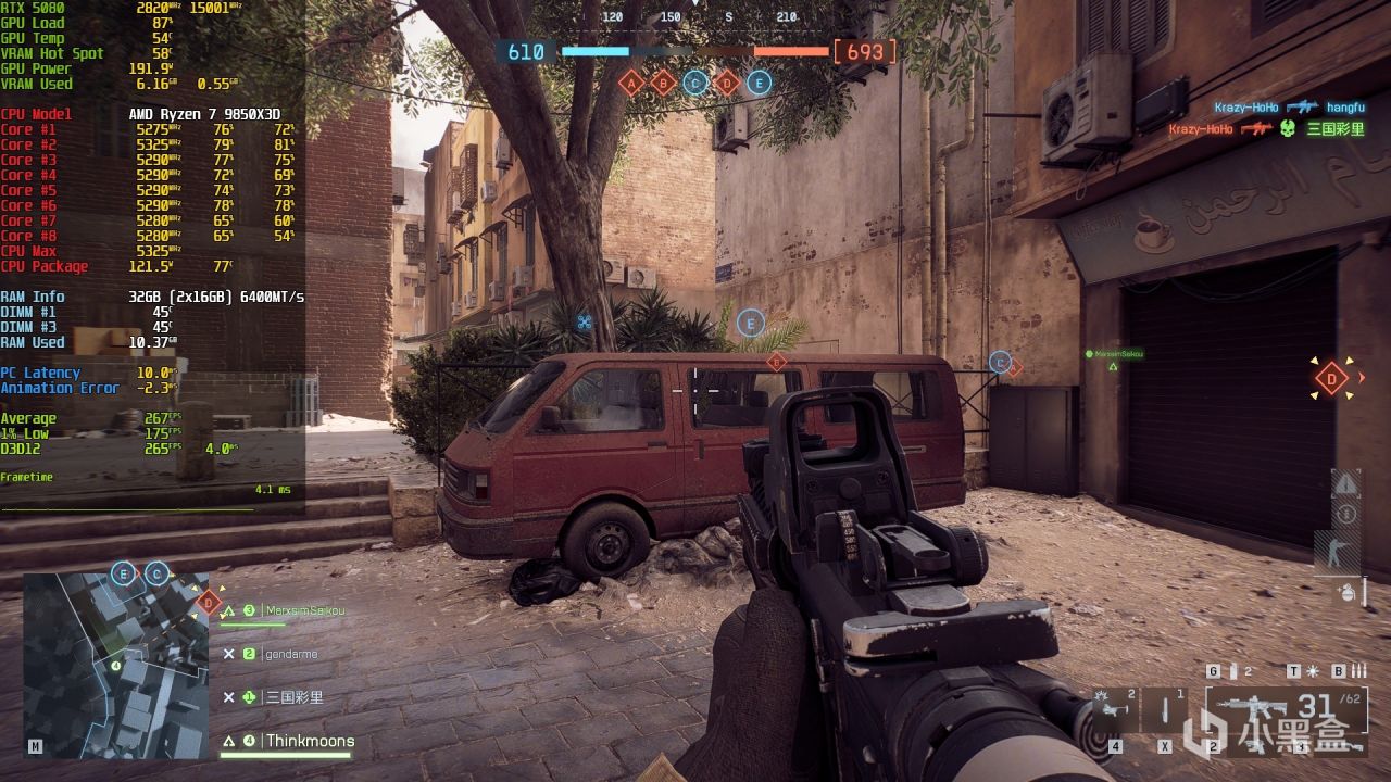 《战地6》预设低画质+TAA,锐龙7 9850X3D+DDR5 6400C28+RTX 5080平均帧数为267fps,1% LOW帧为175fps