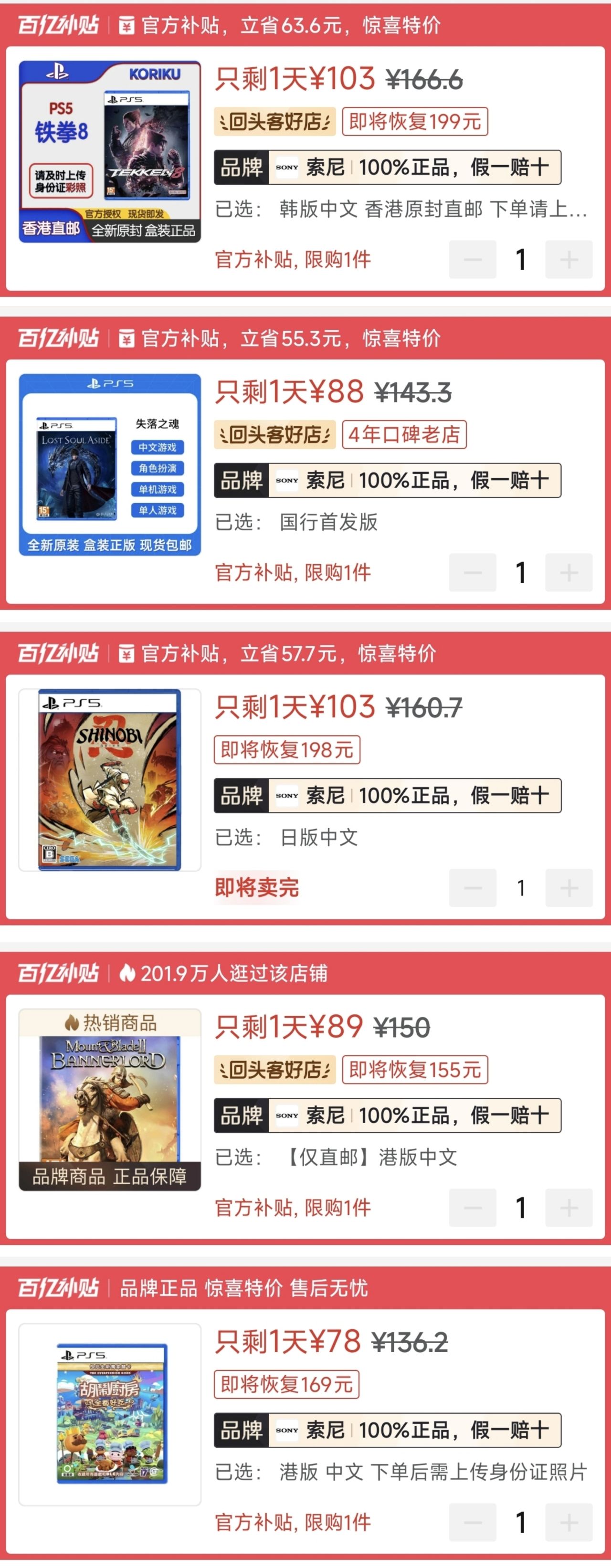 1.《刺客信条影》🇭🇰214(凑单-50)