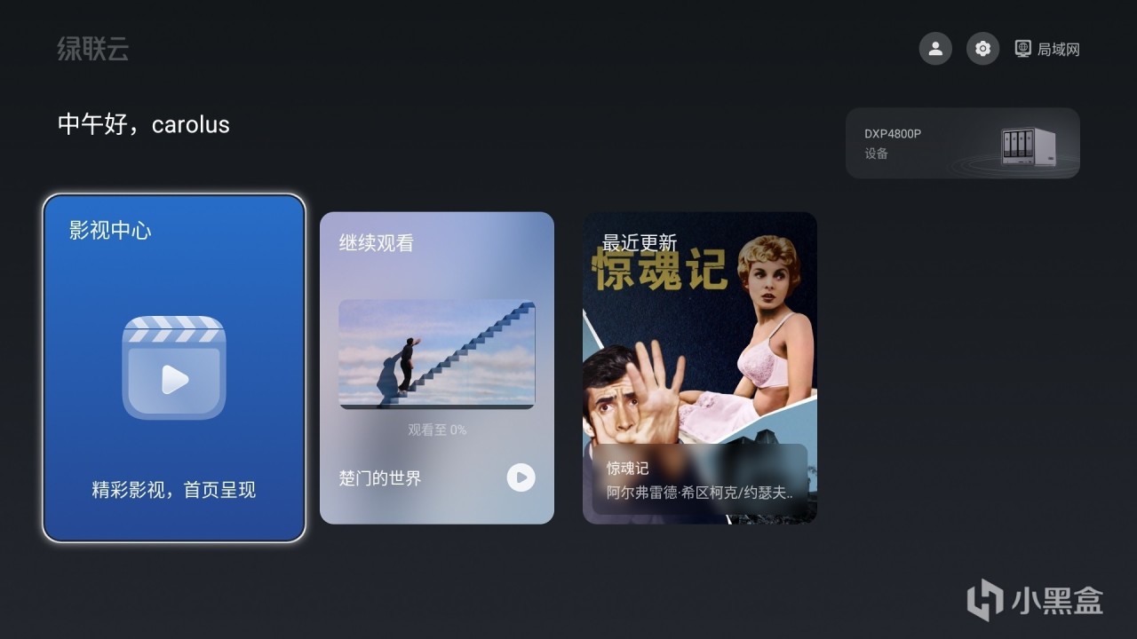 雷鸟最佳的搭配是NAS,它完美支持极空间与绿联NAS,下图是两个NAS在电视上的封面。
