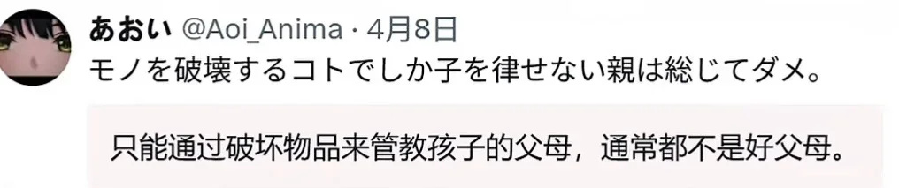 就像视频中那位炫耀摔儿子游戏机逼迫其考上名校进名企的日本老人,在他眼中,游戏是洪水猛兽,毁灭游戏设备是“拯救”孩子的英雄行为。可他没看到,儿子在独立后选择断绝关系、放弃继承权甚至改姓入赘,每一份以控制为内核的“爱”,最终都变成了孩子的一场逃亡。