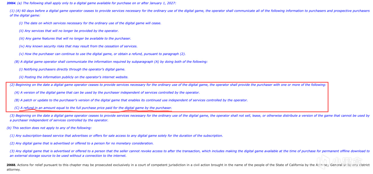 该法案的核心诉求非常明确:要求游戏开发商和发行商在关闭服务器时,必须确保游戏仍可在离线状态下独立运行,否则就需要向玩家提供全额退款。