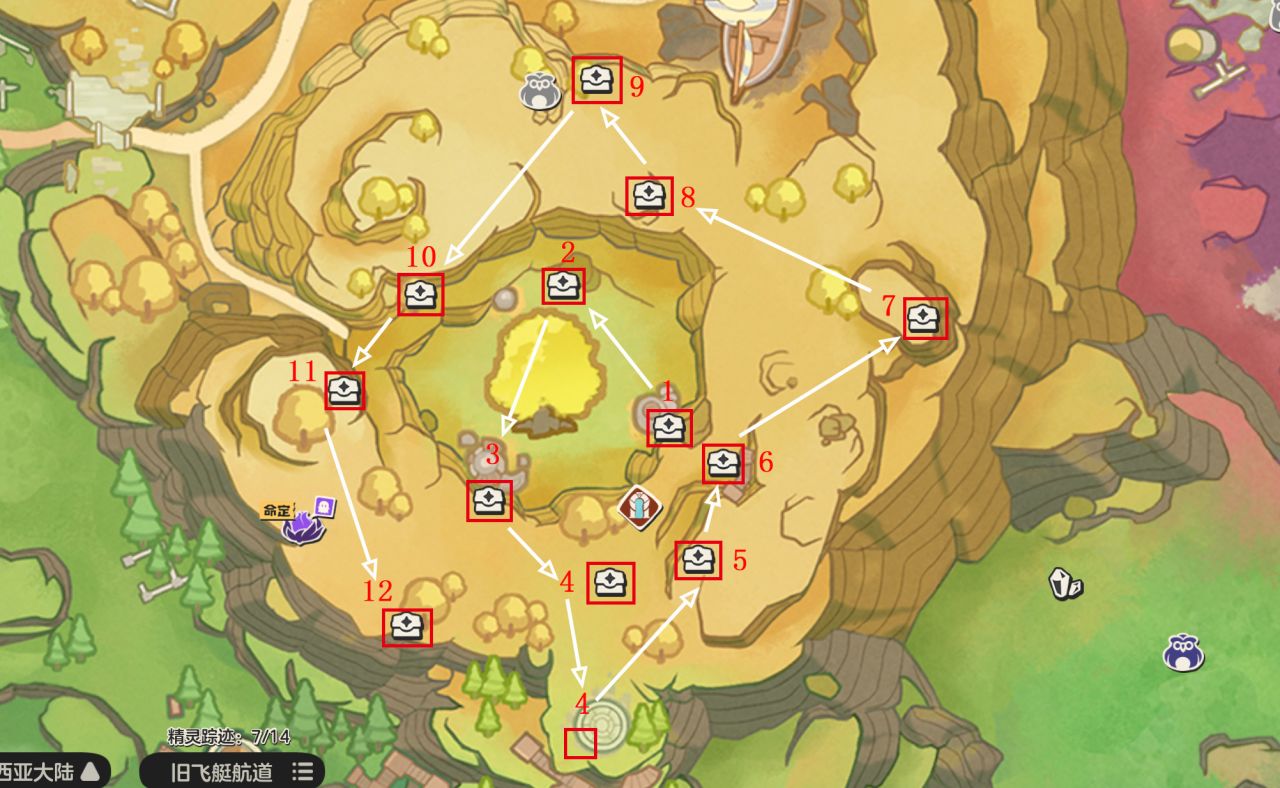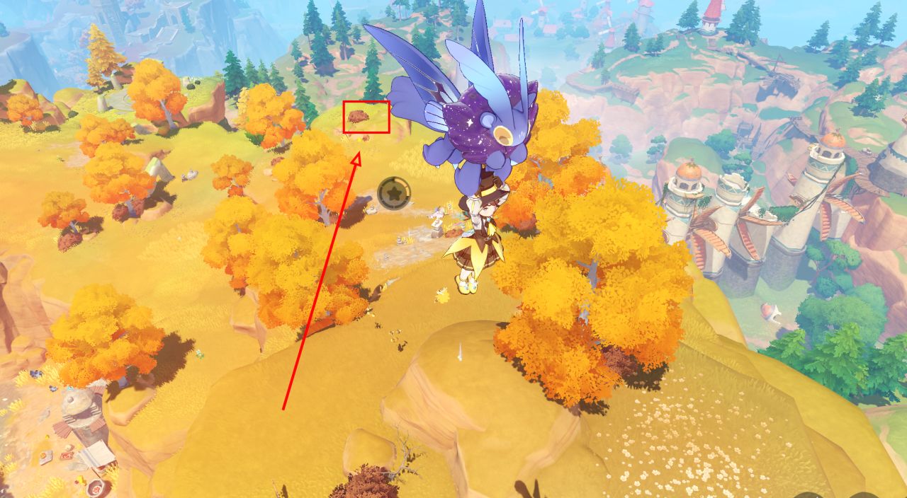 拿完第二个,转身,向南偏西一点的方向飞,越过中心巨树就能看见,在悬崖边,先看木牌的提示,这个点实际上在悬崖下面
