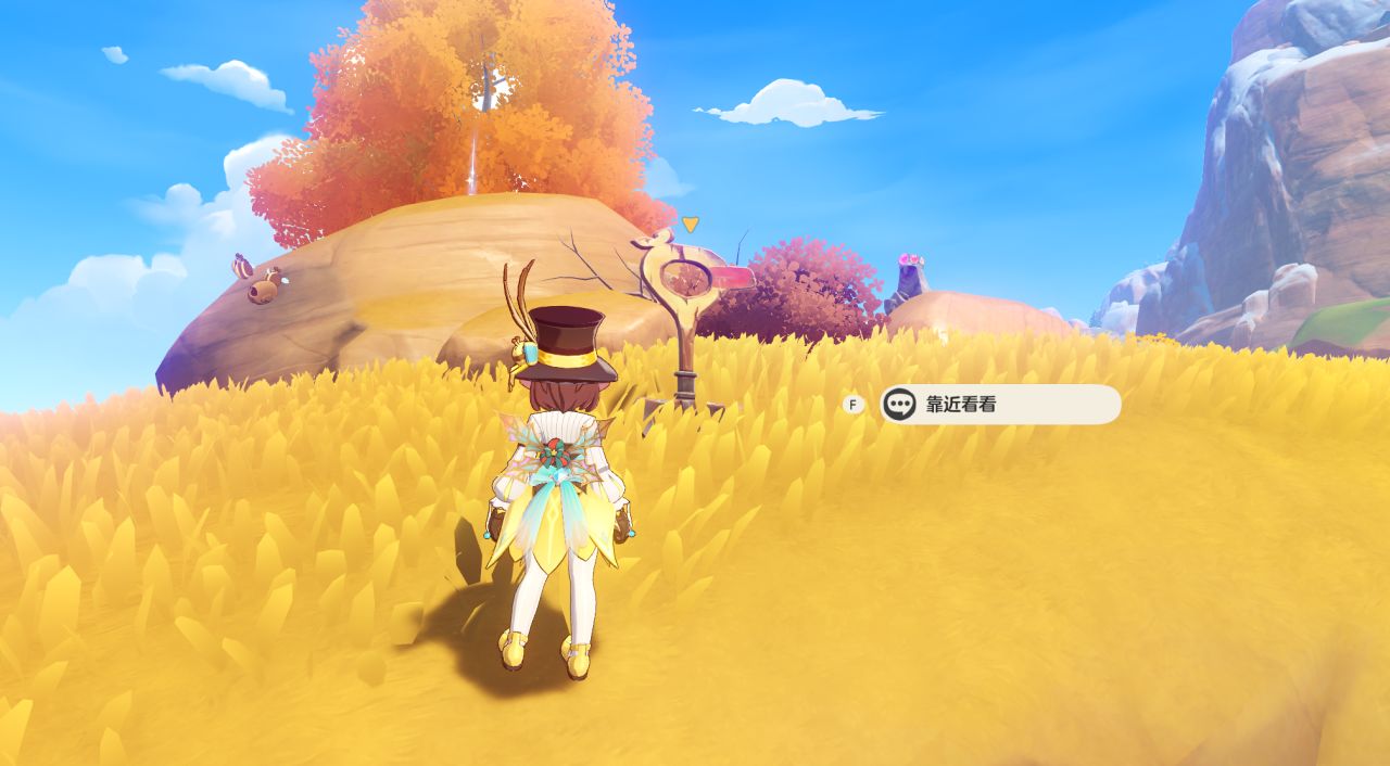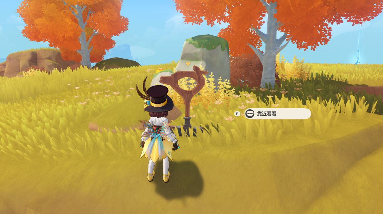 拿完第三个后,回到悬崖木牌这里,向西北方向直走,能看见第4个,和点3一样,需要先交互木牌,这个点实际上在南边的五角石祭坛