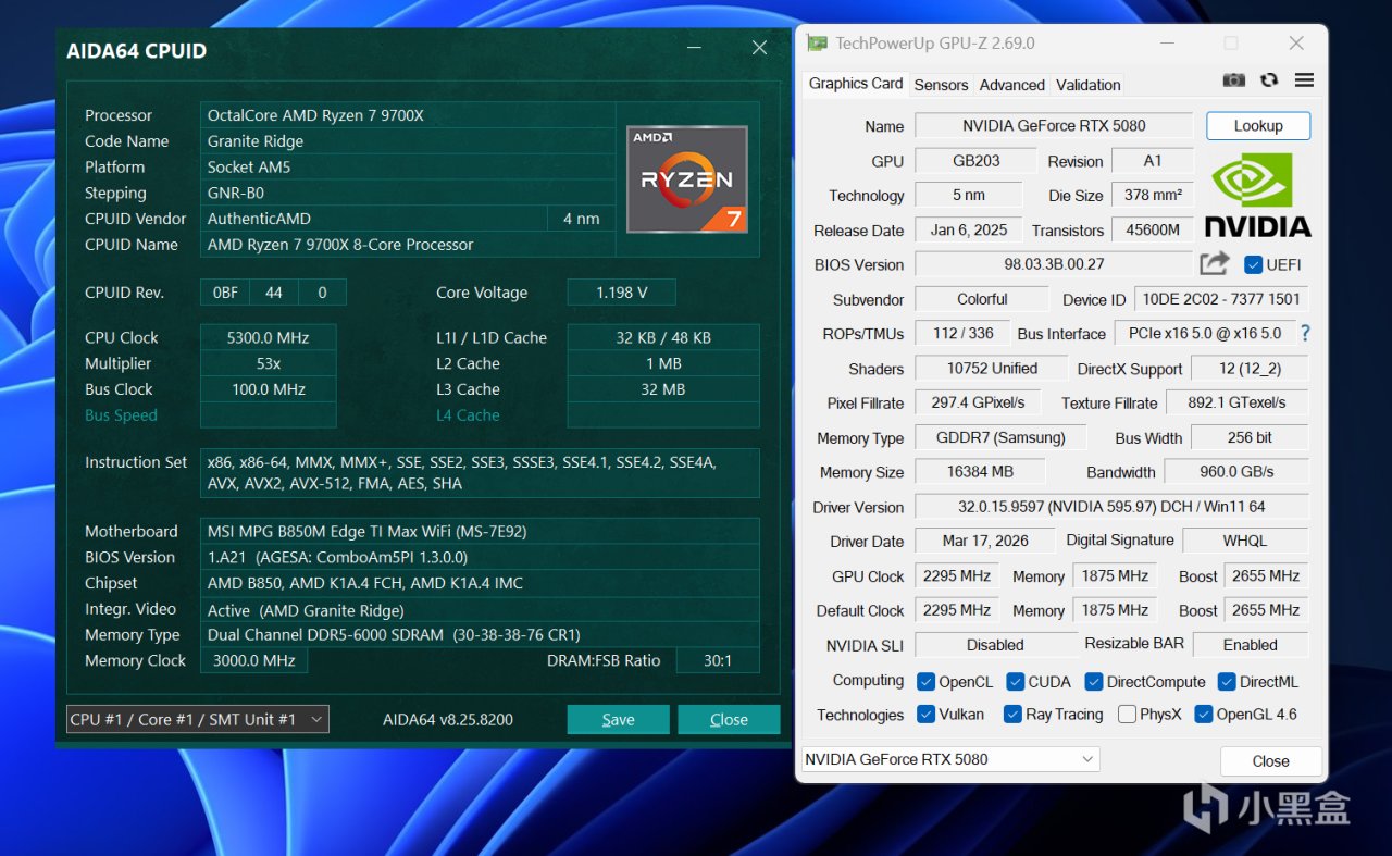 ↑锐龙7 9700X+DDR5 6000C30 16GB*2+NVIDIA RTX 5080