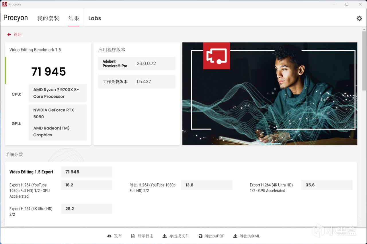 Procyon Video Editing基准测试分数为71945