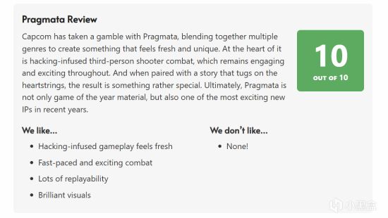 4 月 14 日,卡普空耗时六年打造的科幻动作新 IP《识质存在》(Pragmata)全球媒体评分解禁,口碑炸裂。外媒GameSpew直接给出10/10 满分,盛赞其为 “年度游戏最强候选、近年最惊艳原创大作”。