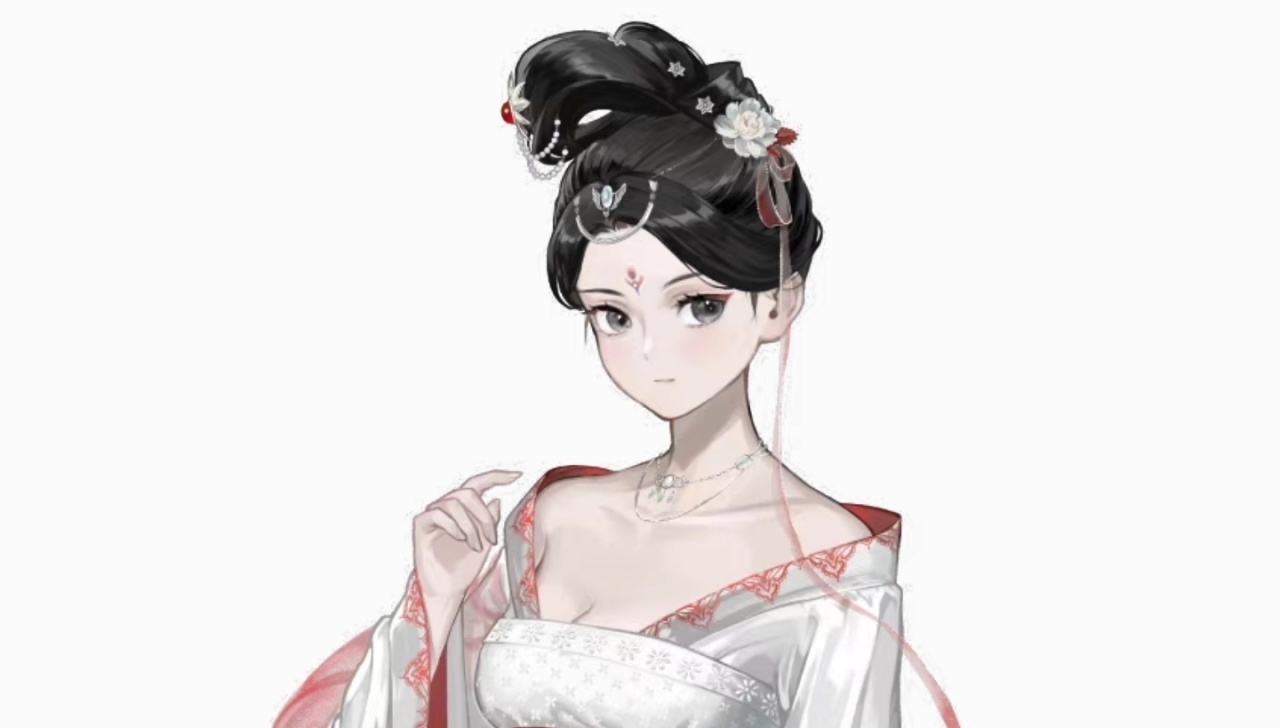 本作中,女主初次登场是16岁,必然没有刘海,而是束起了唐代标志性的盘髻发。