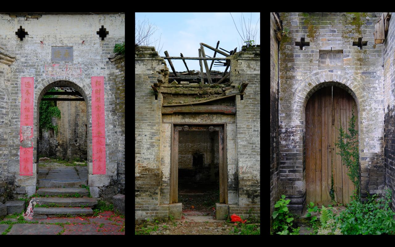 下面是笔者今天路过粤北一个古村做的一组快拍《门扉》。