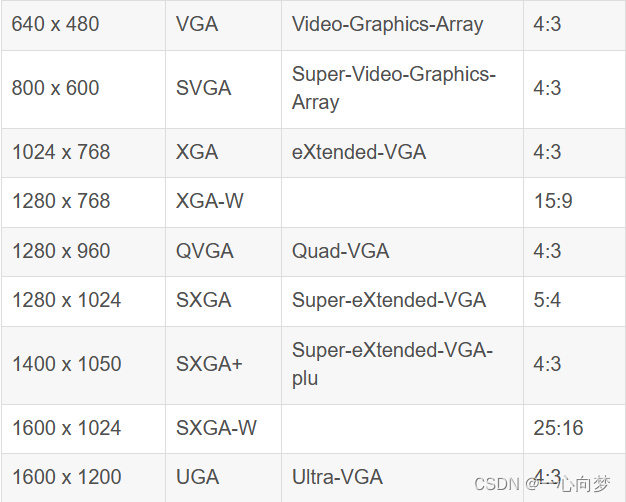 视频分辨率的代号,接口标准和分辨率标准是息息相关的,不过本文主要探讨VGA接口标准