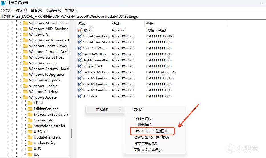 选择 新建 ,选择 DWORD(32位)值(D)