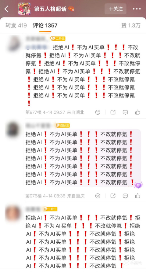玩家不爽的点在于:你大量用AI,抽卡价格一分不少,不喷才怪。