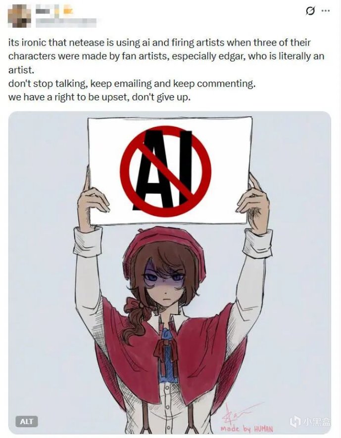 事情最先在海外社区发酵。X和Reddit上,国外玩家疯狂刷图抗议,大量画师发布抵制AI的插画声援那些还在手工为《第五人格》产出的二创作者。