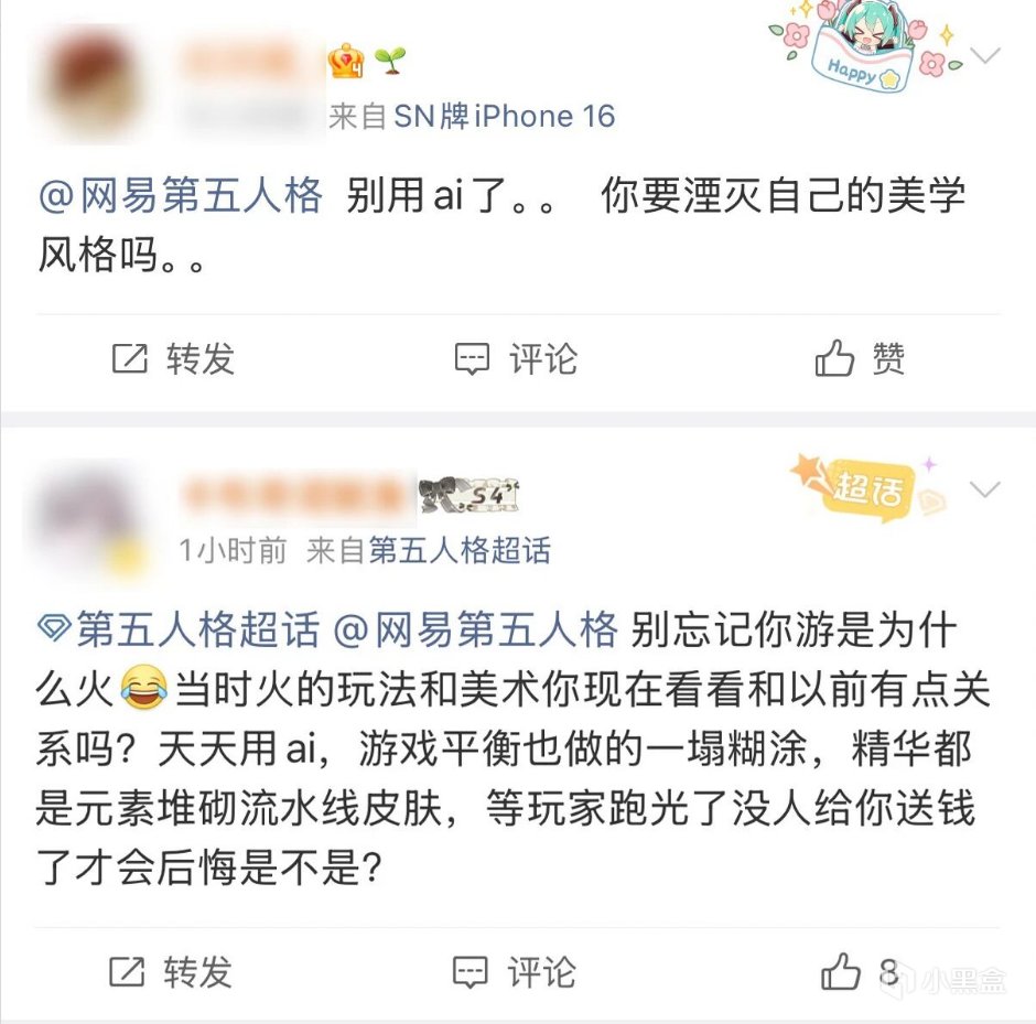 超话里“网易解雇美术团队”“拿AI糊弄玩家”的声讨铺天盖地。有玩家直接点名:从富江联动开始就有AI痕迹了,逆水寒手游的衣服也像劣质AI画的,“头发非要加一小撮膈应玩家,怀疑故意给AI喂垃圾数据”。