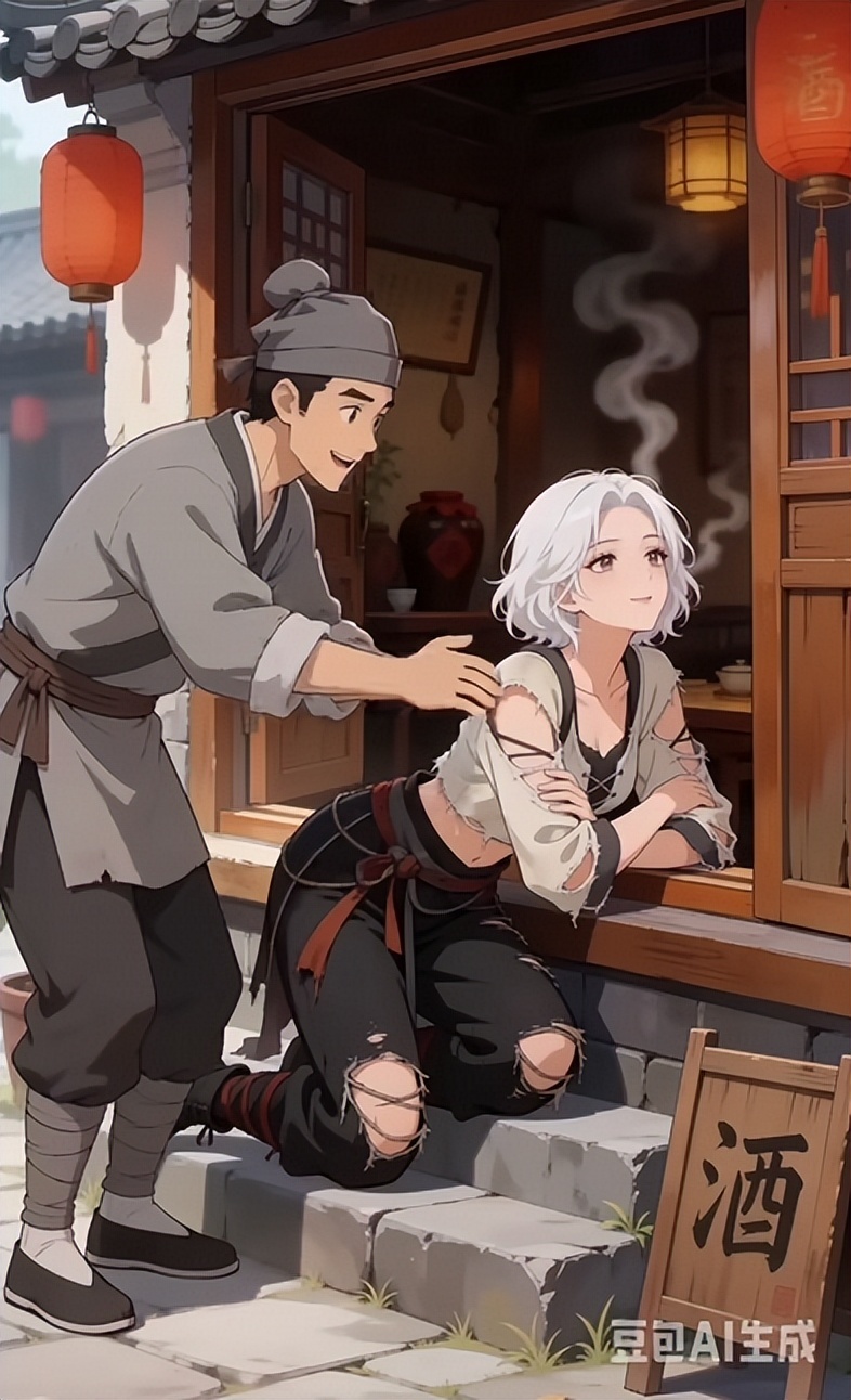 掌柜的,如您不嫌弃。我每回来打二两酒,占您一角,小菜我自备。人多了,我就站那喝,人少的时候我坐下,您看这样行吗?我不耽误您做生意。