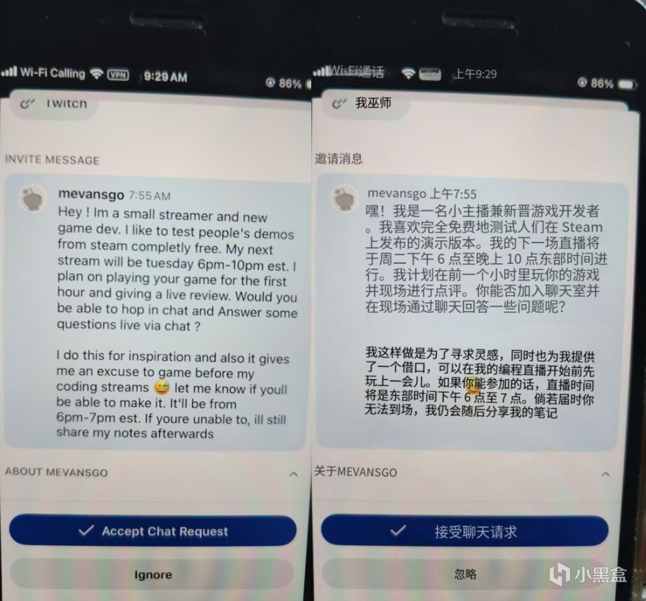 因为轩爷总在Reddit上发咱们游戏的相关内容嘛,然后就有国外的一个小主播联系了他,说他准备在咱们这边时间的6点至7点直播咱们的游戏,问轩爷能不能加入聊天室。