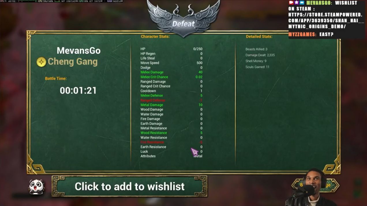 虽然不知道为什么他非要玩噩梦模式,可能就是为了节目效果吧!打了几局后他说自己会购买我们的游戏,并也加入了愿望单,然后还非常贴心的给我们的游戏写了一个评价,其中有一句是:“难度存在。这感觉就像无论我玩多久都会觉得很难的游戏。我喜欢困难的游戏。它创造了可重玩性。”
