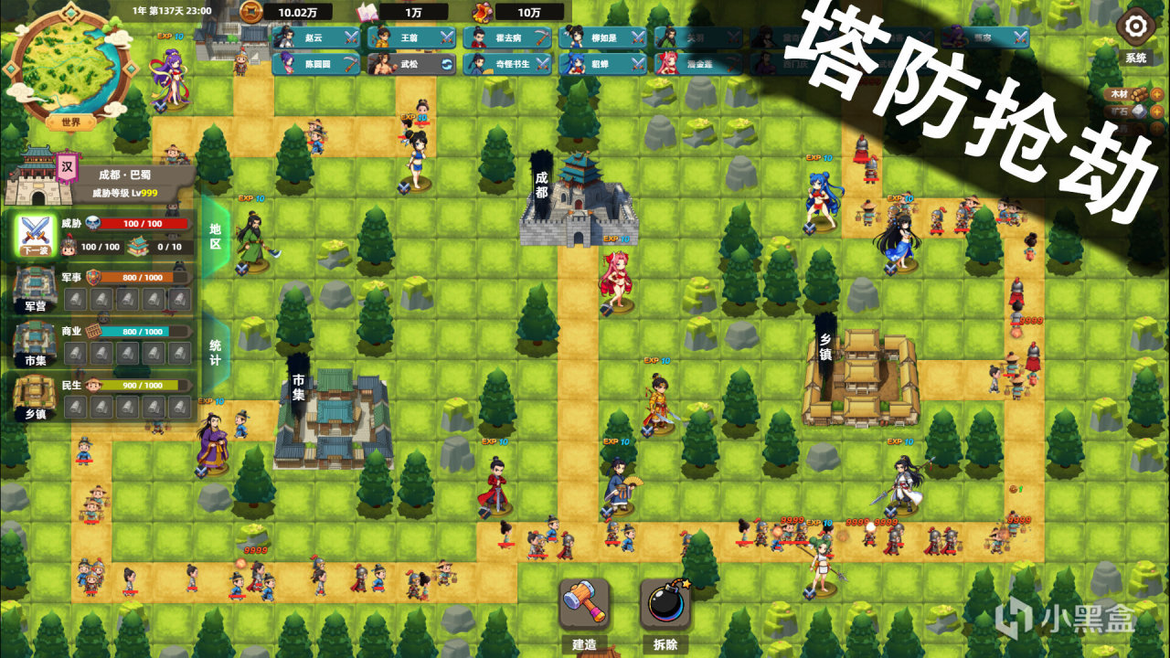 这是一款"塔防战斗+基地建设+可肝可挂"的游戏。从无到有,建立一座土匪山寨。以塔防(TowerDefense)为核心模式。拦路抢劫、狩猎妖兽、探索地图,招募华夏名将!职业、装备、修炼境界,培养强力角色!研究、建造、锻造、炼丹、种田、采集等技艺,不断发展山寨,最终攻伐城池,占领天下!让"上头爽快"与"简单轻松"并存!