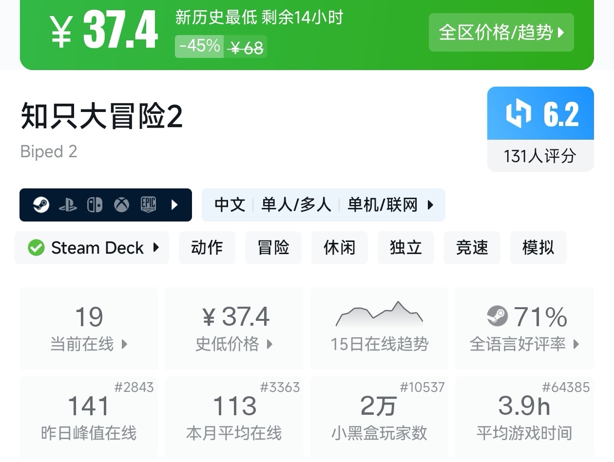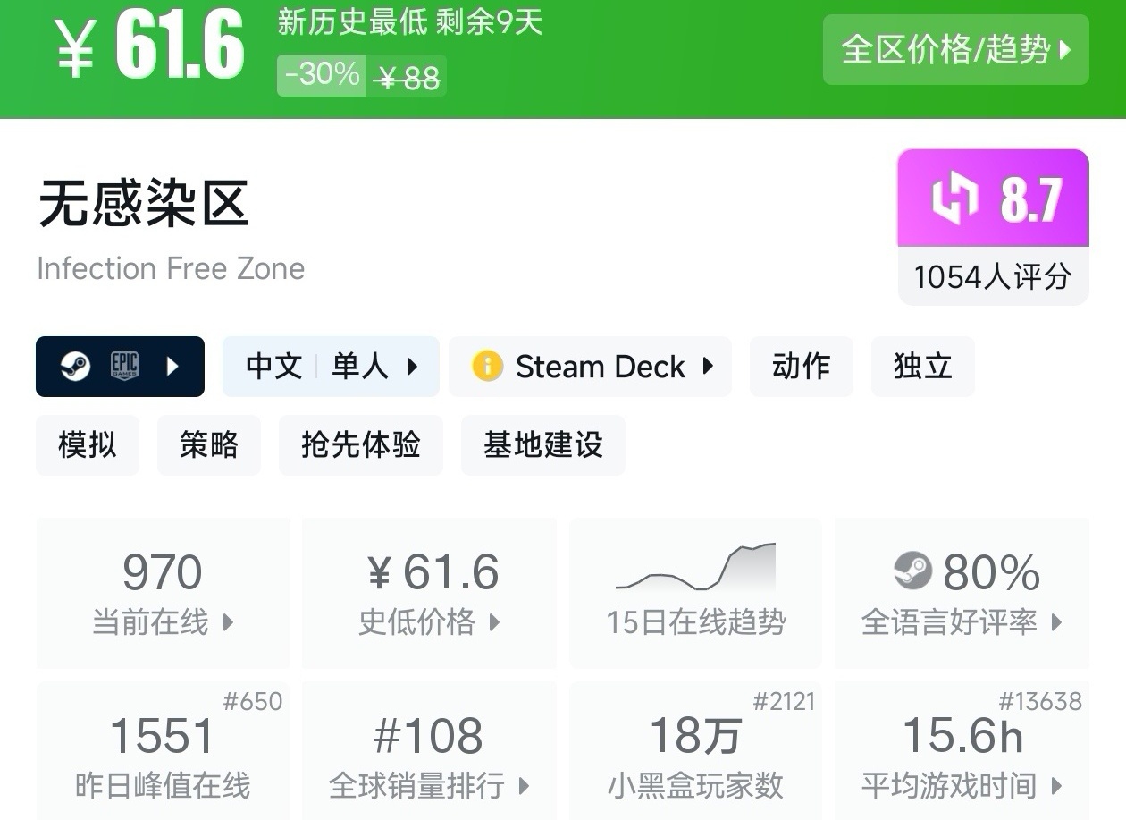 以上就是這期的折扣彙總,幾乎涵蓋了近期所有的新史低遊戲,足足用了我一個小時。