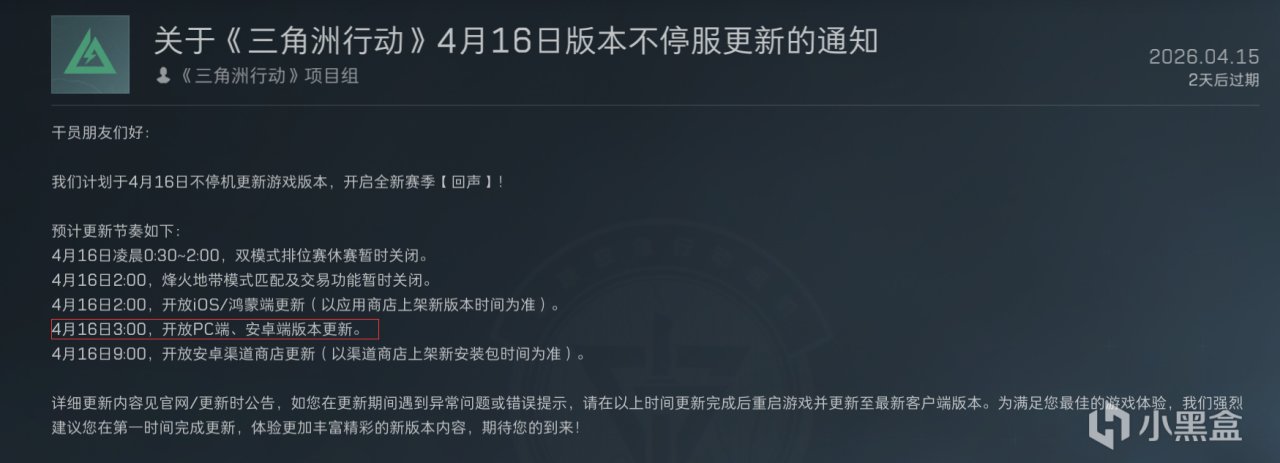 十二加三等于十五个小时之后,也就是16号凌晨3点,三角洲S9赛季就要来了,作为最不重要的烽火地带,新的3X3任务已经在新赛季等着大伙了。