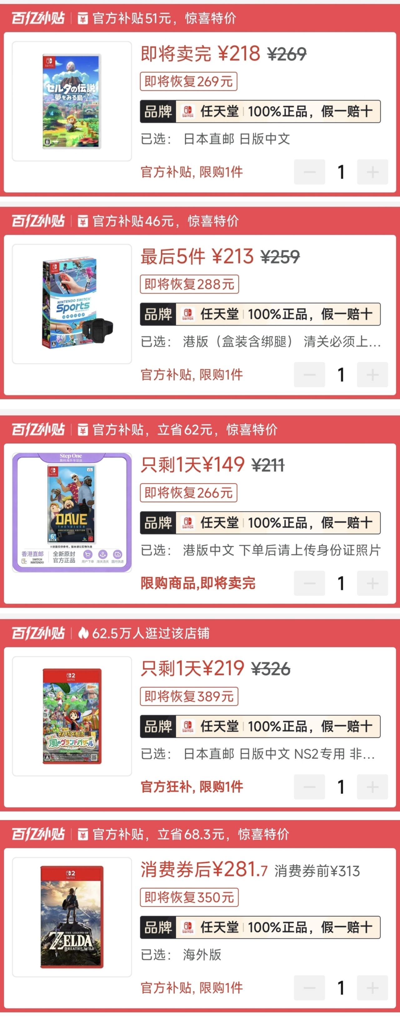 2.《塞尔达旷野之息》ns2版🇯🇵261(-50)
