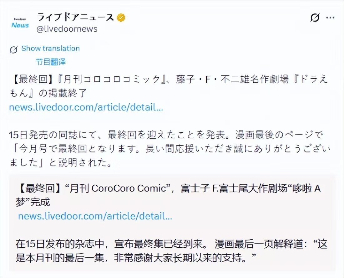 藤子制作公司表示:“哆啦A梦的故事不会结束,只是换一种方式陪伴。”大量读者在社交平台发文悼念:“每月翻开杂志都能见到哆啦A梦,现在像失去了一个习惯。”