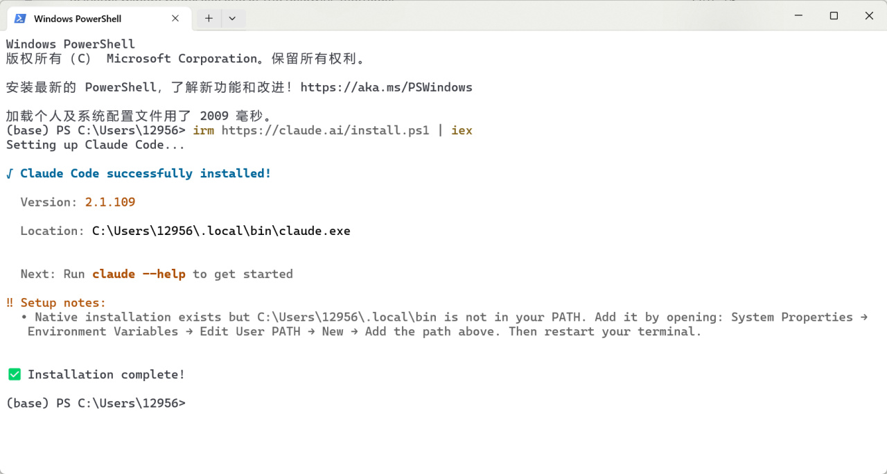 OK至此我们就已经成功安装上claudecode了。