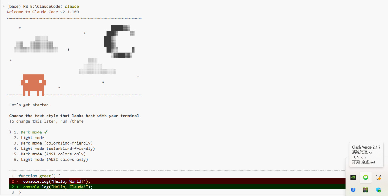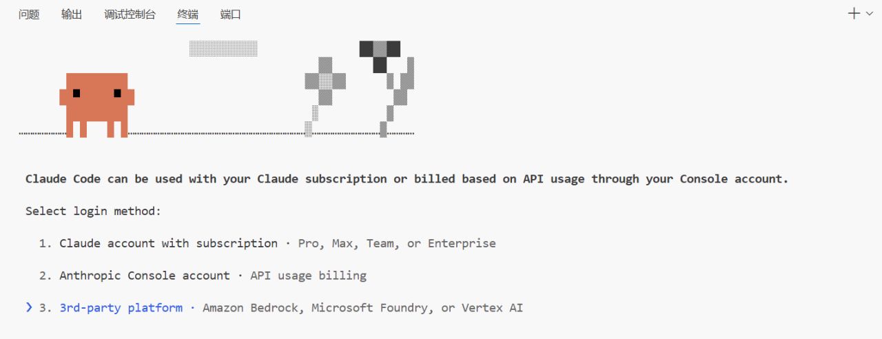 添加完成后我们再重新打开终端,输入claude,这时候就没有登录按钮了