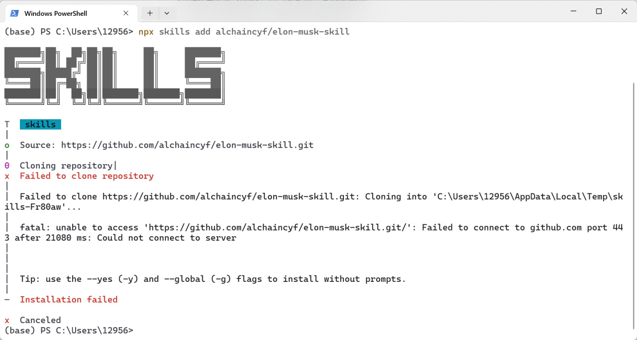 然后可能是我的网络问题,克隆仓库总是出错,我就直接手动下载了。直接下载整个项目的压缩包,然后解压拖进我们的skills文件夹即可。