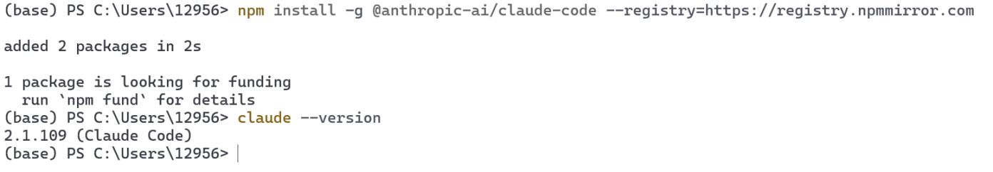 npm install -g @anthropic-ai/claude-code --registry=https://registry.npmmirror.com