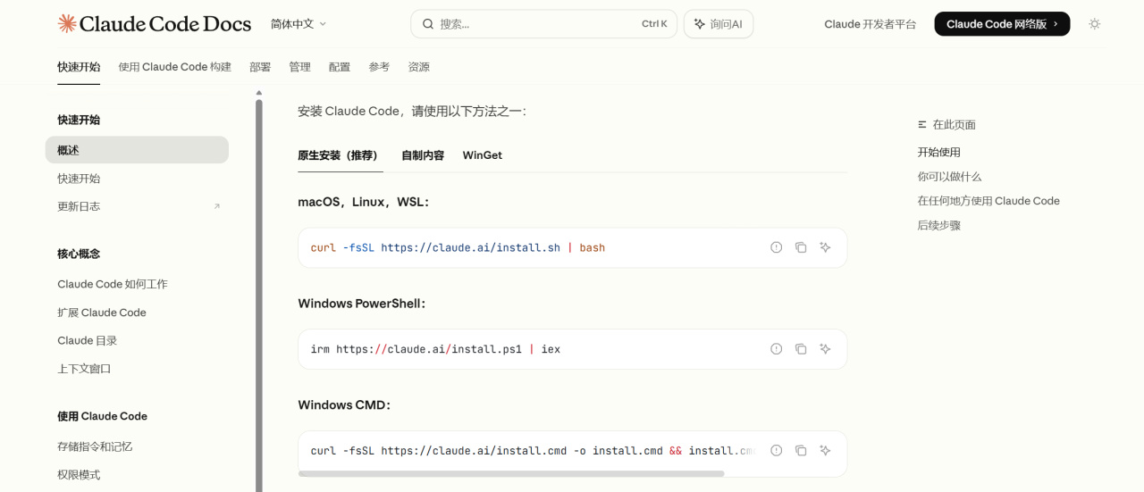 https://code.claude.com/docs/zh-CN/overview#native-install-recommended