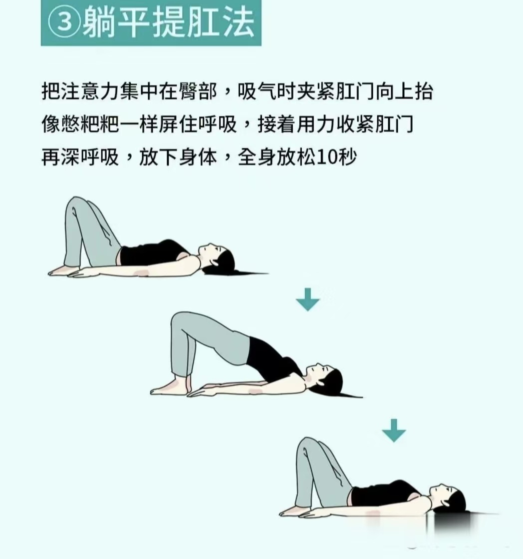 提肛运动:提肛运动:有意识地收缩肛门,保持3-5秒后放松,重复进行。每日早晚各做1组,每组20-30次。长期坚持可增强盆底肌力,促进肛周血液循环。