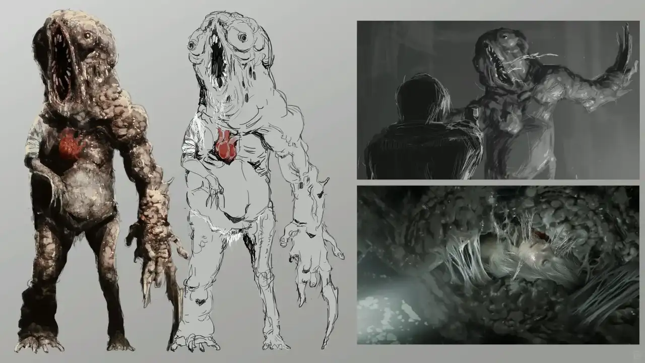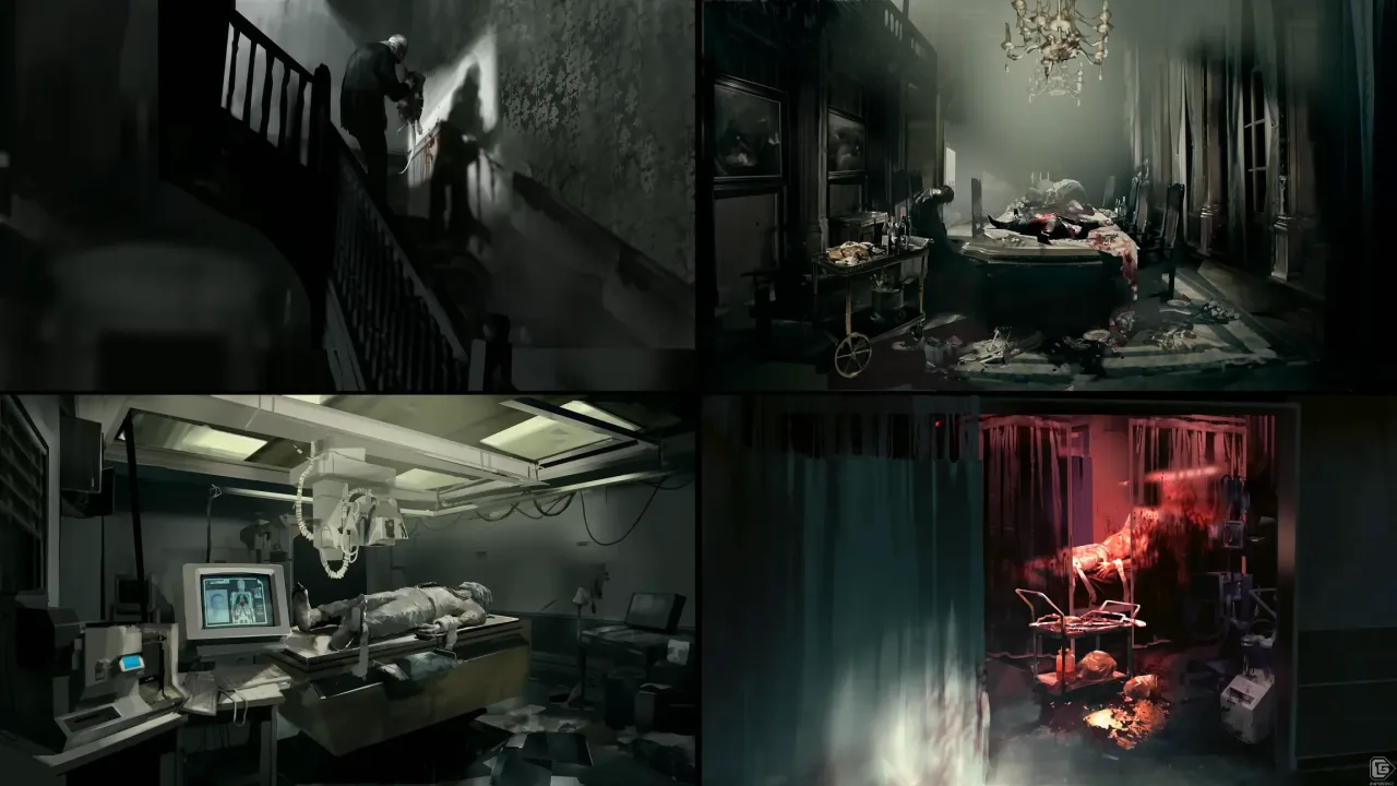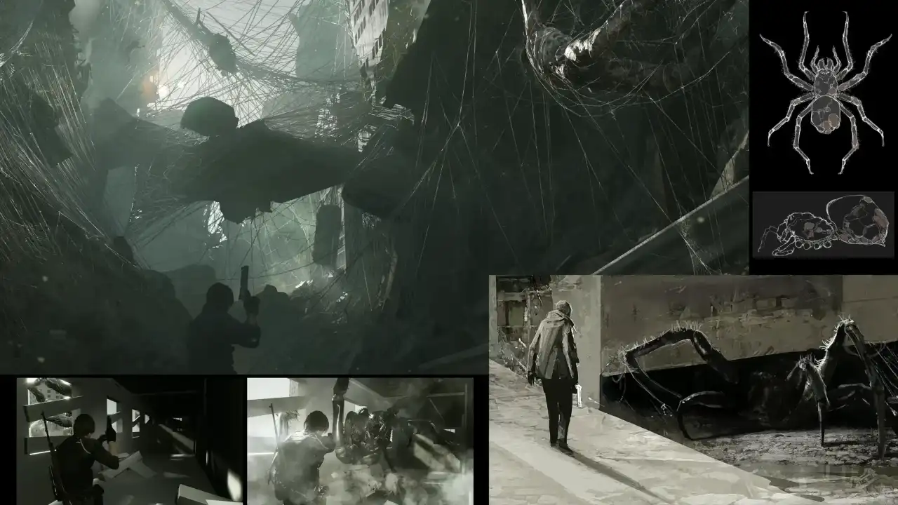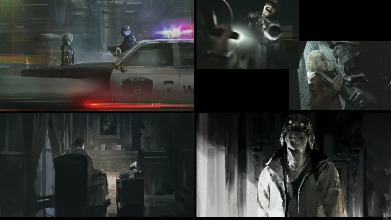 《生化危機》系列 30 週年正統續作《生化危機 9:安魂曲》製作的官方角色 / 場景概念設計圖,遊戲開發過程中的美術設定稿