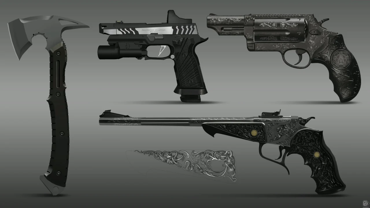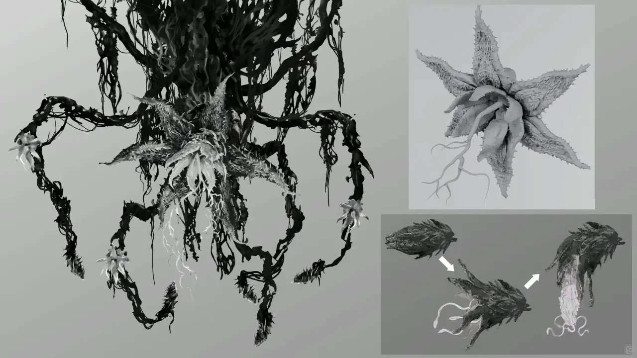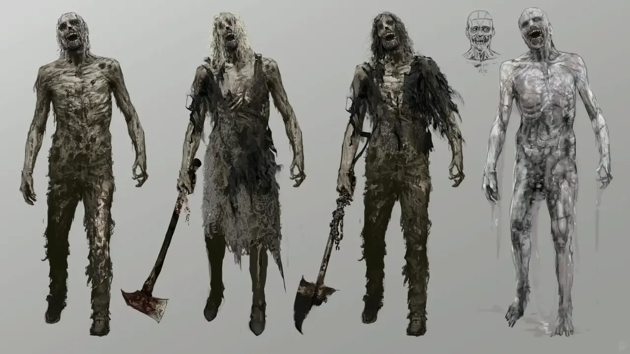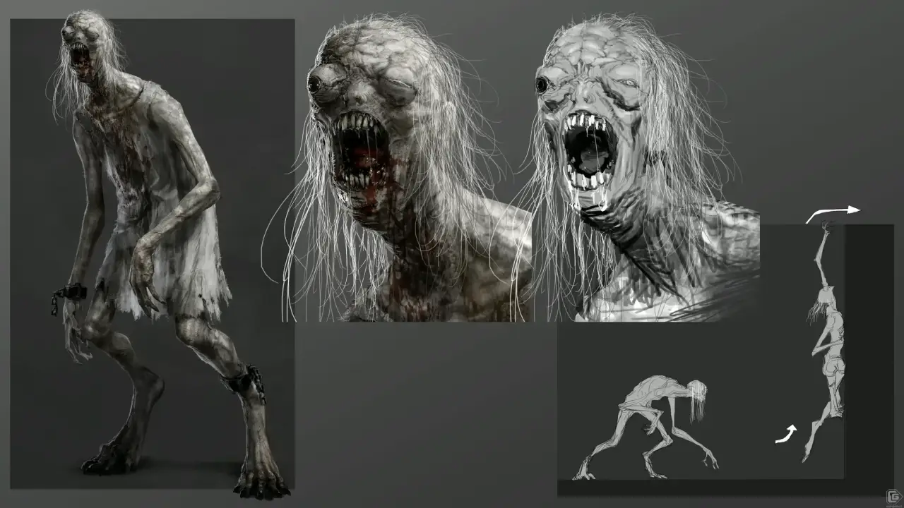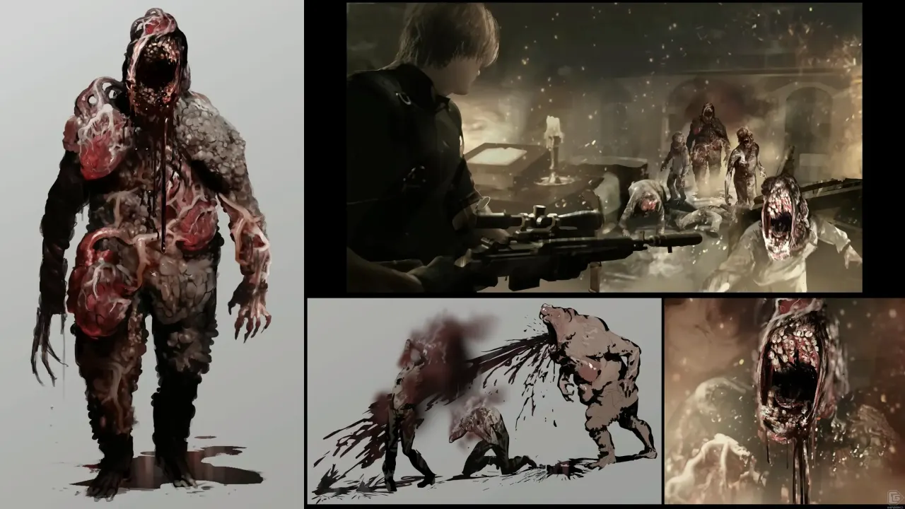 《生化危機》系列 30 週年正統續作《生化危機 9:安魂曲》製作的官方角色 / 場景概念設計圖,遊戲開發過程中的美術設定稿