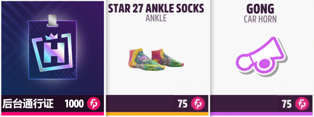 其余物品:后台通行证、STAR 27 踝袜、锣