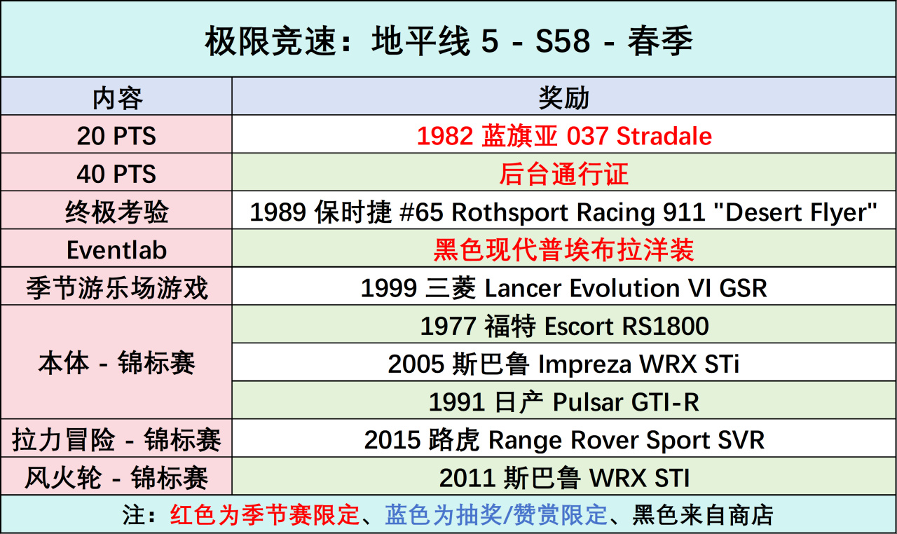 返场奖励:蓝旗亚 037、后台通行证。