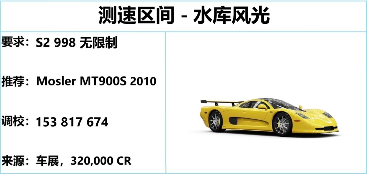 从左上角坡顶的 U 型弯后起步,前两个弯减速通过,后段全油门+硬拉方向即可。