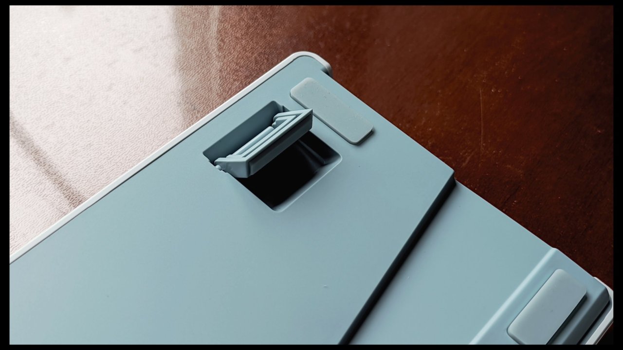 這次青龍87是把無線接收器放在了背板。倒不用擔心啊,這個它是磁吸的,吸力也非常強。並且也在背板用了同色的工藝非常好看,整體質感高度統一。