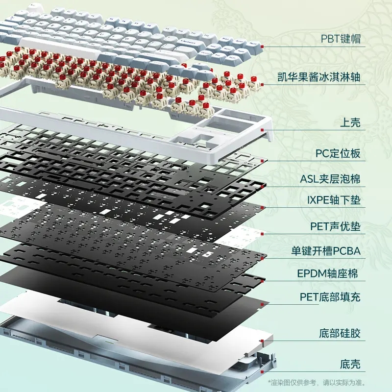 依舊統一的Gasket Pro結構,但上下底殼加發泡棉條支撐,軟彈感拉滿。六層消音填充(ASL夾層泡棉、IXPE軸下墊、PET聲優墊、EPDM軸座棉、PET底部填充、底部硅膠)確實手感非常好。