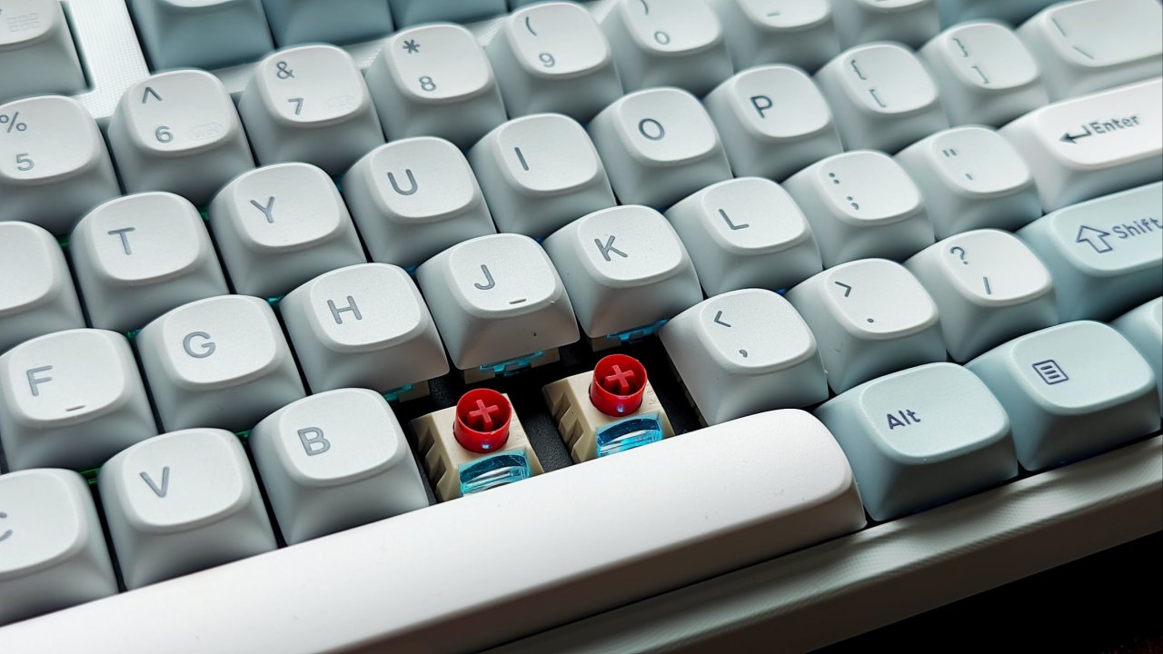 正好說到背光,我們就直接來聊一聊這款的軸吧,這款是SKN聯合凱華定製的果醬冰淇淋軸,全POM材質,潤滑效果還是比較舒服的,並且手感順滑不卡手。