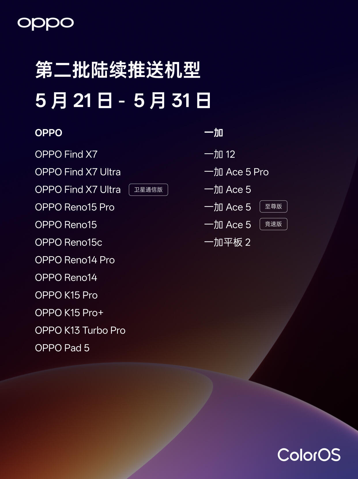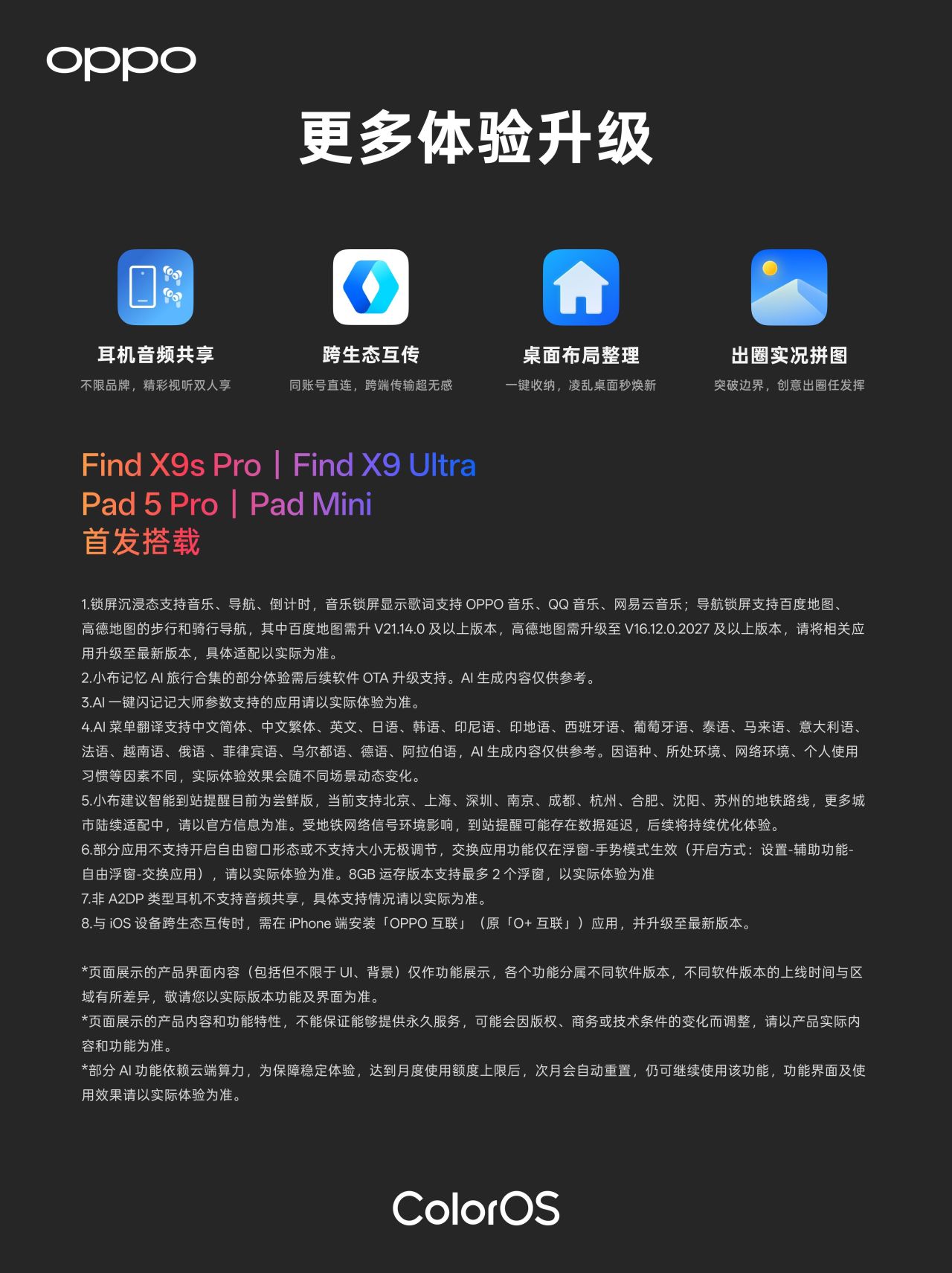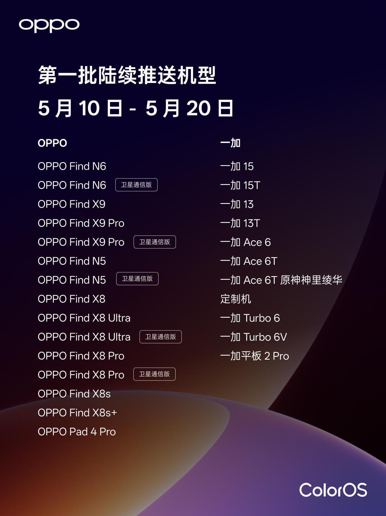 OPPO Find X9s Pro、 OPPO Find X9 Ultra、 OPPO Pad 5 Pro、 OPPO Pad Mini 首發搭載。