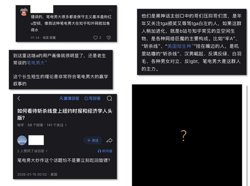 于是,在这些领域的诸多爆典言论,也被某些群体“顺理成章”地扣在了笔电男大的头上。